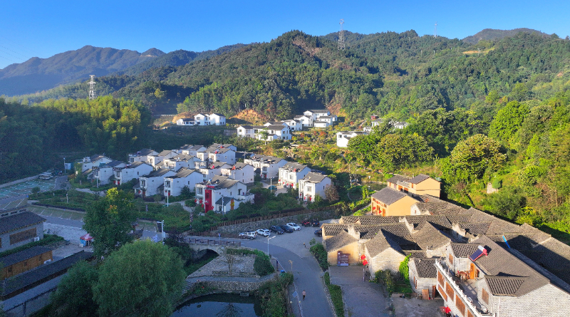 2024年9月28日,安徽省六安市金寨县花石乡大湾村,一栋栋白墙灰瓦的房屋错落有致地分布。新华网发 (田凯平 摄)